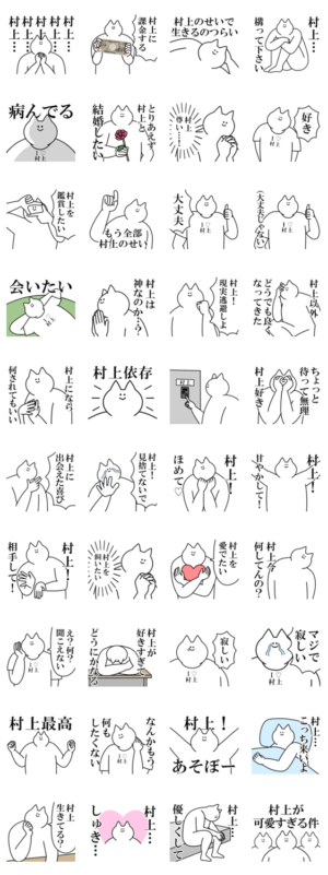 村上さんに送る名前スタンプ。愛情強め。好きな人彼氏彼女推しに使える!メンヘラ、ヲタク、ヤンデレ、ネタ系、アイドル好きな方へ。むらかみ ムラカミ/oroninet