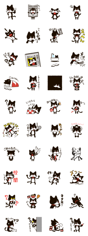 朝日新聞オリジナルキャラクター「マダニャイ」のスタンプが登場!新聞連載小説で読んでから夏目漱石作品が大好きな(こう見えて)子猫。文豪に憧れていて、実はつけひげ。