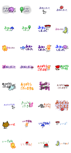 【大人気!】承知しました、ありがとうございます、いいですね、の絵付きバージョンスタンプ。背景白推奨。他のスタンプも見てね!澤村金魚 より発売