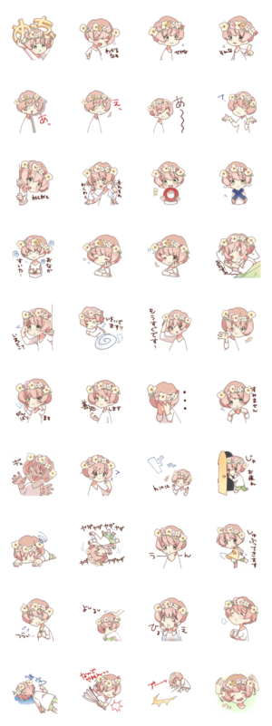 chouchou fleur公式、花束ちゃんのスタンプです。相変わらずテンションが高い。チャリキ より発売