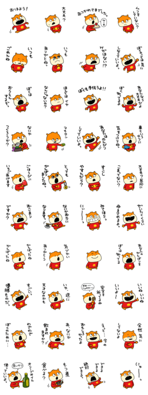 気を使いがちこねずみ スタンプに書いてある文字一覧