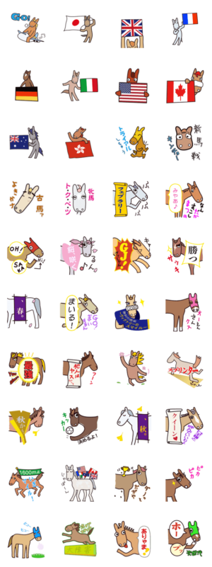お馬さん応援スタンプ。ダジャレ好き競馬好き歓迎!ケイバ仲間とのやりとりを可愛く便利サポート。日本でも世界でも頑張りましょう。