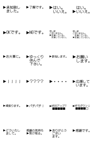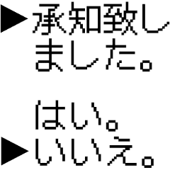 ドットRPGゲーム風!古くて懐かしい文字だけ/敬語スタンプ/承知いたしました/ビジネス敬語/挨拶/日常会話/丁寧語/了解です/お大事に/はい/いいえ/ありがとうございます/mamama-chin より発売