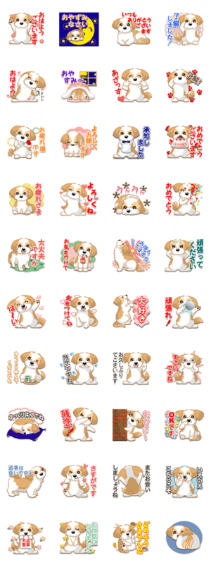 シーズーの日常スタンプです。丁寧語メイン。シー・ズー。tsubasa.seisakusyo より発売