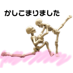 ポーズスケルトンが色んなポーズで日常会話。かしこまりました、お願いいたします、承知しました、お先に失礼します、ごきげんよう、等使いやすい敬語中心のスタンプです。