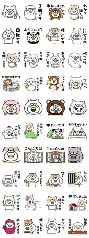 着ぐるみ着たトリの敬語スタンプです。mame&co より発売