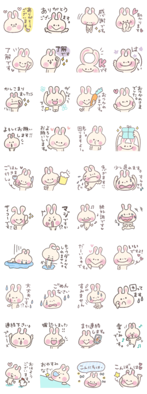 クレヨンで描いたうさぎのかわいい敬語スタンプ。ゆるめの敬語で、日常的にも使いやすいセットです。kaho より発売