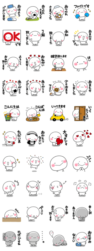 しろくてまるいキャラクター「しろまる」の敬語verです。目上の方、上司など誰にでも無難に使える内容のみを厳選している無難な白キャラです。【作:いしいともこ】