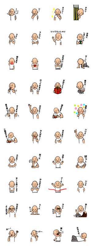 おじいちゃんがよく使うスタンプ第2弾です。おじいちゃん おじい じいじ じいちゃん じっちゃん おやじ お坊さん スキンヘッド ちょいワル 日常 普段使い