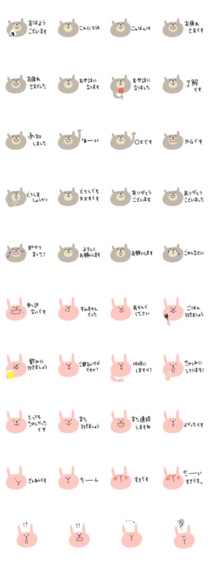 くまとうさぎのイラストの、ほっこりゆる〜いスタンプです。今回はシンプルで使いやすい敬語です。nonko より発売