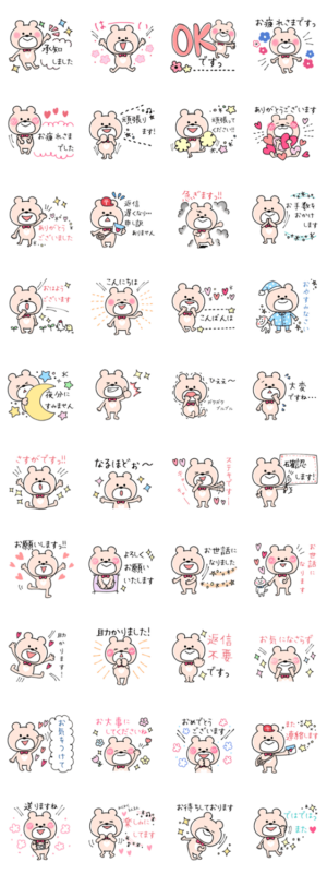くまこの敬語スタンプです。 丁寧な言葉を集めました。 先輩や上司に送る可愛いスタンプです♪puchico より発売