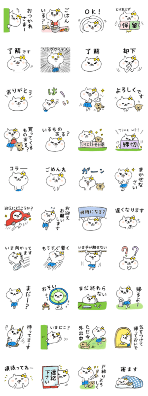 女子力高めな白猫、ネコ子の家族連絡用スタンプです。「了解」「遅くなります」等家庭内でよく使う言葉を集めました。家族だけでなく、仲良しカップルや親しいお友達にも!OTOBOOK より発売