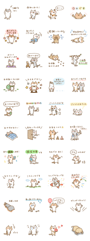 敬語のねこ&ネコ&猫。仕事でも学校でも家族でも毎日使える便利な40個セットです。挨拶や日常会話、会話の終わりに送りやすいものを集めました。猫好きさんへどうぞ。