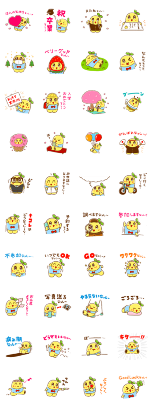 2000年に1度現れる千葉県船橋市の梨の妖精「ふなっしー」!今回は春スタンプに登場!!春もハシャギまくるふなっしーをたくさん使ってなっしー♪ヒャッハー!(株)アップライト より発売