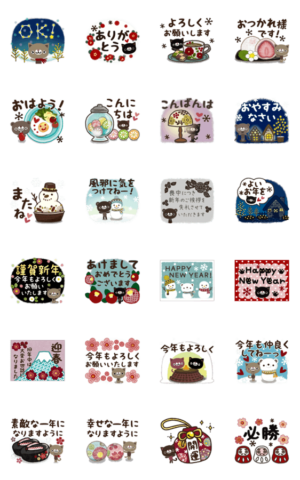 年末年始用と冬に使いやすい日常用をセットにしました♪落ち着いた色味の手書きイラストが可愛く動きます。大人女子の皆さんに~♪nanaya より発売
