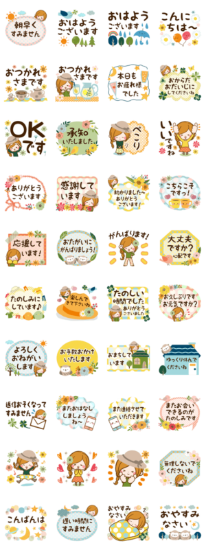 お花や小鳥や小物がかわいい大人ナチュラルな敬語スタンプです♪ ふんわりやさしい色合いと手描きイラストが癒しを誘います♪ 「ほのぼのカノジョ」シリーズ