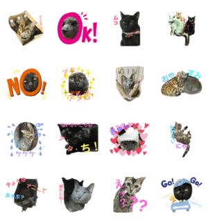 招き猫の黒猫・愛を運ぶロシアンブルー・元気になるベンガルの日々の生活をスタンプにしました!