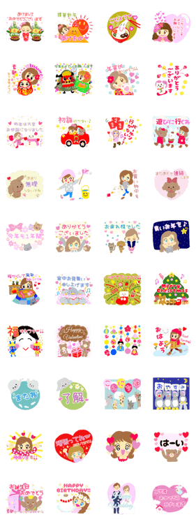 ずーと使える!お正月、クリスマス、節分、ひなまつり、バレンタイン、誕生日、結婚、出産、おめでとう、ありがとう等、日常の温かい気持ちになるスタンプがいっぱいです。