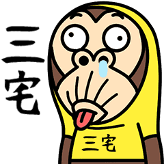 オシャレな『三宅』のTシャツを着た動くお猿さんのスタンプです。(三宅猿/ミヤケ猿)セイコウ より発売