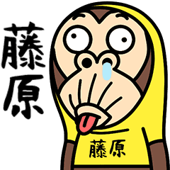 オシャレな『藤原』のTシャツを着た動くお猿さんのスタンプです。(藤原猿/フジワラ猿)セイコウ より発売