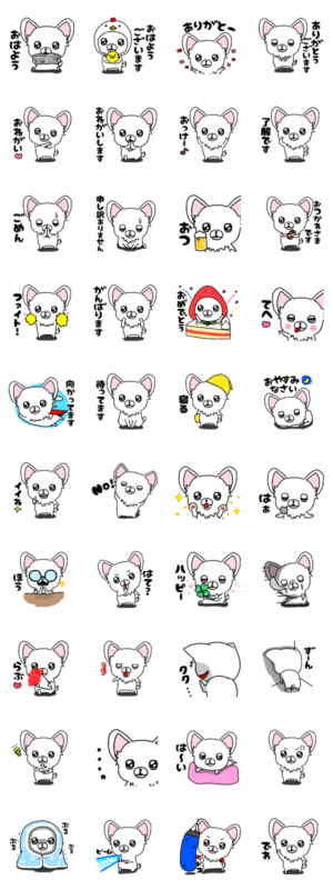 犬好きの方へ。チワワのホワイトです。日常で使いやすい挨拶など。ありひな より発売