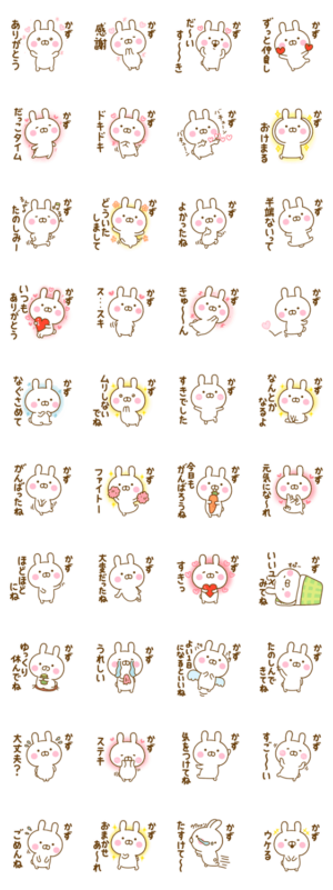 ゆる~く、かわいい、うさぎ(うさひな)の☆かず☆カズ、和に送る名前スタンプだよ♪