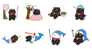 チョイワル気取りのネコのバッドキャット君の春と鯉のぼりとの闘いが入ったスタンプです