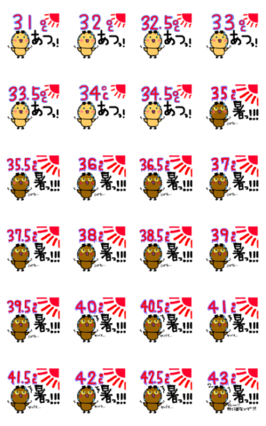 ひよ子の日常*夏*気温* スタンプ画像一覧