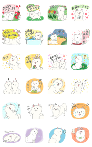 春、イースターの時期にぴったりのかわいいスタンプ♪ 白くてもふもふ可愛い日本スピッツですしろねこまんじゅう より発売