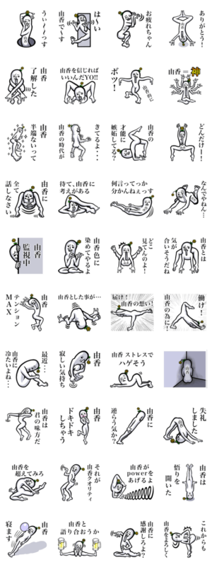 名前【由香】スタンプ。由香/ゆか/ユカ/ゆうか/ユウカ/ゆかちゃん/ユカチャン/由香君/ゆいかくん/ユイカクン/よしか/ヨシカ/よりか/ヨリカ/ゆかっち/ゆかりん/なぽぴらふ