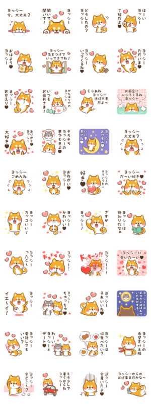 ヨッシーへ送るためのキュートな柴犬のラブラブスタンプ♪NAZ より発売