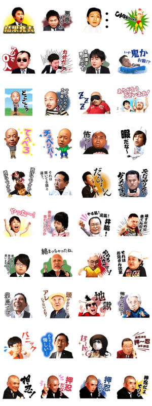 水曜日のダウンタウンの名場面が「使いやすい」LINEスタンプに!ダウンタウンをはじめ、個性豊かな出演者が勢ぞろい!どんなシーンにも対応できる「押忍」スタンプも!