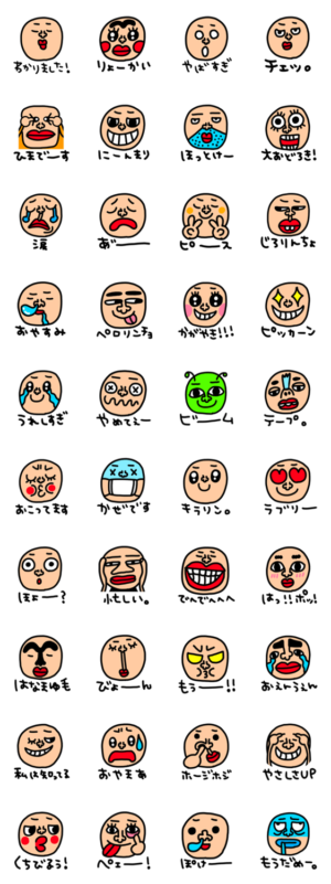 riekimの顔絵文字にセリフつけてスタンプにしました。かわいいものからシュールなものまで。