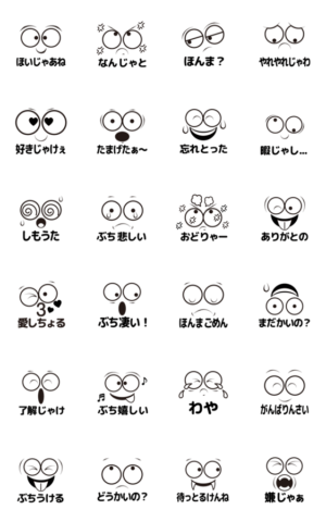 お馴染みの顔だけシリーズの広島弁!の方言スタンプ! 表情豊かなアニメーションスタンプがLINE会話を盛り上げてくれます♬