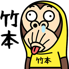 オシャレな『竹本』のTシャツを着た動くお猿さんのスタンプです。(竹本猿/タケモト猿)セイコウ より発売