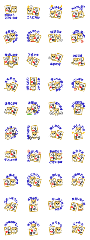日本の伝統的代表犬の柴犬で会話する新元号記念スタンプです。期間限定の「よろしく令和」の日常会話用のスタンプです。