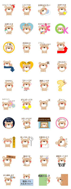 よく使う言葉を大きな文字で分かりやすいスタンプです。 送る人にも送られる人にも優しいスタンプです。 了解、おはよう、こんにちは、ありがとう、ごめんなさい、お疲れ様