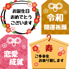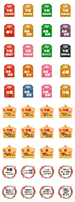 お守り 絵馬 花輪 リース 神社 新元号 令和 誕生日 安産 新年 正月 開運 寿 祝 恋人 夫婦 家族 友達 仕事ビジネスの挨拶 あいさつ お礼 感謝 祈願 お祝い スタンプ