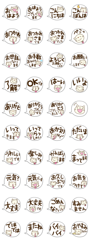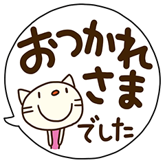 「てるてるねこ」挨拶ふきだし編。「いってらっしゃい」から「おかえりなさい」まで。たくさんの人に、気持ちがいい挨拶の言葉を届けよう。