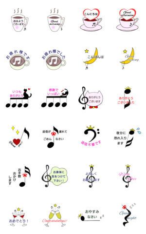 可愛い音符を添えて日々のトークに彩りを!挨拶中心です♪ぴあのんにゃん より発売