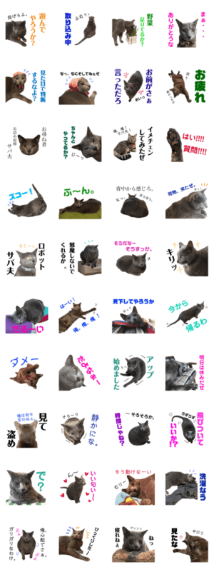 口の悪い飼い猫、ロシアンブルーのサバ夫のスタンプ第3弾です。冬のホットカーペット、夏のフローリングが大好きです。今日も缶詰ちょうだいアピールに勤しみます。Yaji より発売
