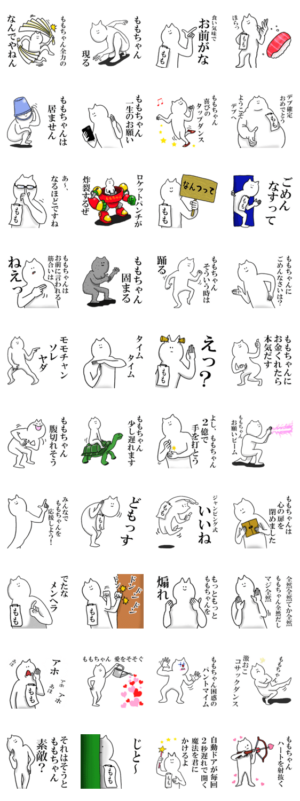ももちゃんはとっても正直者。うそがつけない性格なのです。そんな素直なももちゃんのスタンプ第六弾です。もも、ももこ、もえ、ももな、ももか、どうぞ。