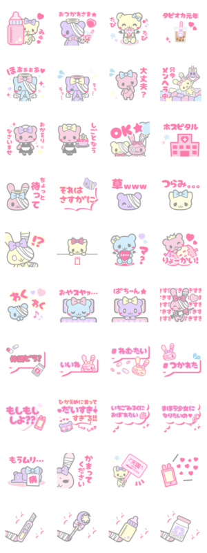 病みかわいいゆめかわいい♡パステルカラーのアニマルたちです♡デカ文字や人気の吹き出しのスタンプもあるよ。バンギャ・メンヘラ・原宿系が好きな人へ。絵文字もあるよ♪りうぽん より発売