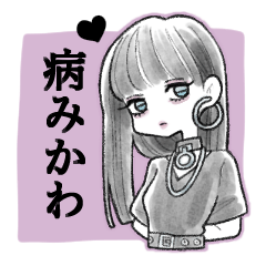 ちょっぴり病んでる可愛い女の子のスタンプです。ヤンデレ、メンヘラ、ゴシック、ダークファッション、黒色、オシャレ、黒髪好きさんに。
