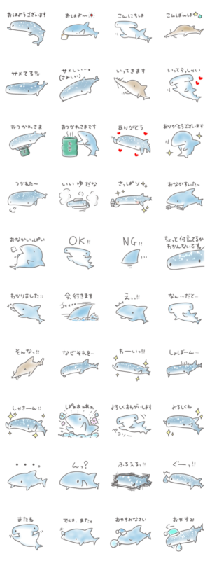 色々な鮫[さめ]達のシンプルで使いやすいスタンプです。[ジンベイザメ シュモクザメ ノコギリザメ]Punipuni より発売