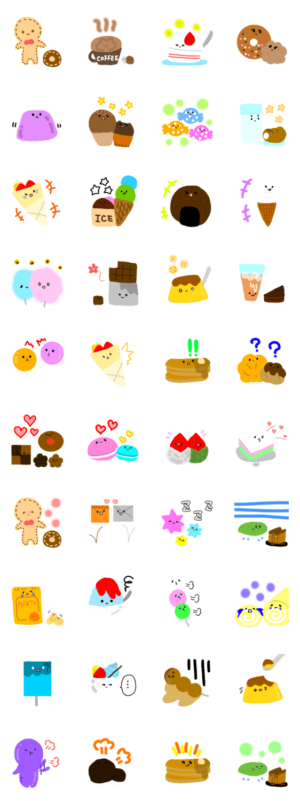 色んなお菓子達の色んなスタンプです☆トークとの間にそっと添えてね♪花まり より発売