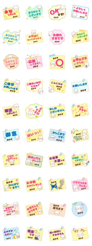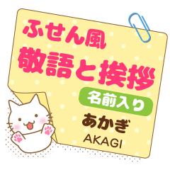 ねこ日常&仕事丁寧敬語挨拶スタンプ/猫ふせん風/ネコフセン/付箋メモ[赤木/あかぎ/アカギ/垢木/明城/赤井/赤城/赤来/赤鬼]おなまえ/姓名/苗字/職場/しごと/専用/名前お名前入りスタンプ専用★アイシスデザイン株式会社 より発売