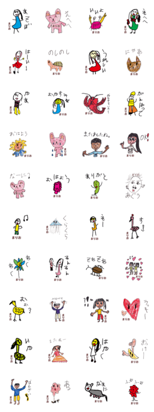 こどもの絵のスタンプ「まりお」 スタンプ画像一覧