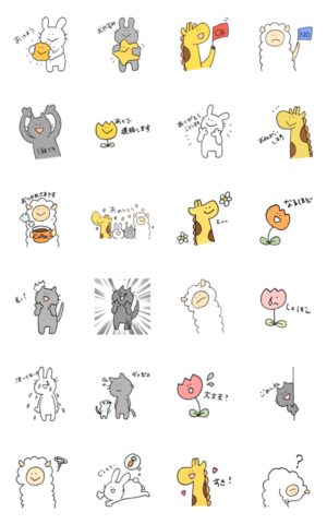 ほんわか動物たちの日常会話に使いやすい手描きスタンプです。PIKO より発売