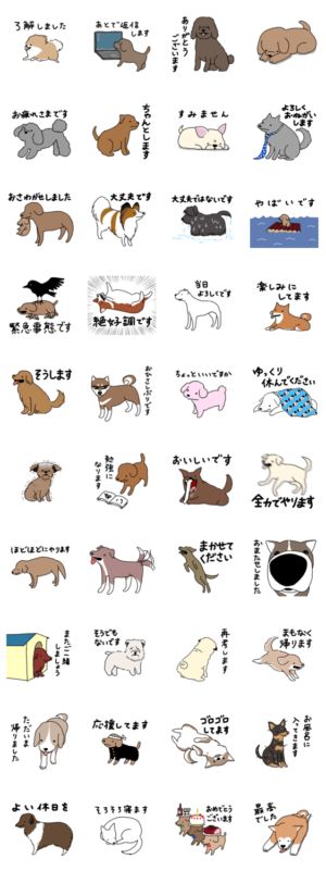 ていねいな言葉を用いる犬たちのスタンプです。うかうか より発売